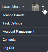 Profile lets you manage your personal profile, your tasks settings, your account, your contacts, and Log Out from ProjectDirector.