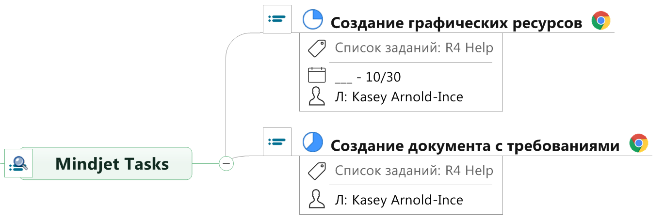 Примечание. У вас может не быть доступа к онлайн-функциям MindManager. Однако, если у вас есть учетная запись MindManager Plus, Mindjet for Business или ProjectDirector, вы можете включить онлайн-функции MindManager в меню Параметры. Можно изменить критерии фильтрации для тем карты с запросами заданий Mindjet, а затем увидеть новые результаты запроса при обновлении этой темы. Также можно изменить текст темы, добавить другие подтемы (в дополнение к темам с результатами). Темы с запросами заданий Mindjet можно перемещать и копировать как и другие темы карты. При перемещении и копировании такая тема сохраняет свою функциональность: полученные темы с результатами остаются связанными с соответствующими онлайн-заданиями Mindjet Tasks и они обновляются при каждом обновлении своей родительской темы. Дополнительные сведения об изменении тем с результатами см. в разделе Работа со связанными темами заданий Mindjet. На панели Указатель карты на вкладке "Элементы" в группе Бизнес-темы перечислены все темы на вашей карте, которые содержат запросы заданий и результаты запросов Mindjet Tasks. |