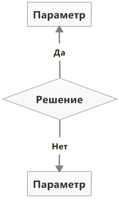 Темы решений в форме ромба обозначают место, в котором требуется принять решение. Как правило, в теме решения имеются две стрелки, указывающие в двух направлениях: "Да" или "Нет". |