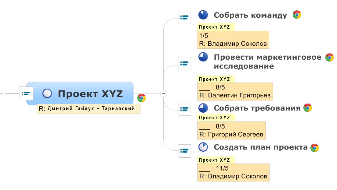 Создание онлайн-заданий Mindjet Tasks из тем карты