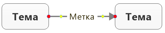 В тех случаях, когда тема на одном конце связи отображается, а на другом – нет (находится в свернутой ветви, скрыта с использованием фильтра или расположена на другом слайде), для видимой темы будет отображаться частичная связь. При наведении указателя мыши на частичную связь появится подсказка с именем связанной темы. |