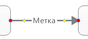 При выборе связи будут отображены маркеры, с помощью которых можно изменить форму связи или точку ее соединения. |