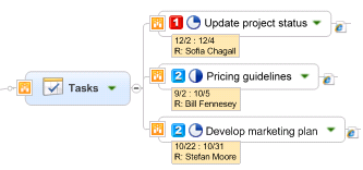 Если вы перемещаете из ветви с запросом тему с результатами, она также сохраняет свои функции: ее свойства остаются синхронизированными, ссылка указывает на связанный элемент SharePoint, остается двухсторонняя синхронизация информации о задании (для заданий и проблем). Но при обновлении исходной темы с запросом на место перемещенной темы добавляется новая тема с результатами. Это может привести к дублированию элементов на вашей карте.