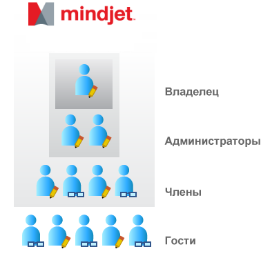 В учетных записях Mindjet имеются следующие роли: владелец, администраторы (необязательно), участники и гости.