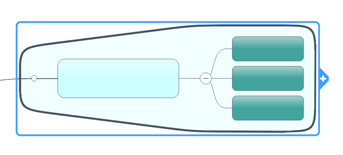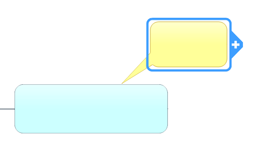 La bulle sélectionnée avec son cadre bleu et son onglet d'ajout rapide. Cliquez sur l'onglet d'ajout rapide de la bulle pour ajouter des sujets secondaires (enfants). |