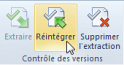 Une fois la modification effectuée, retournez à la fenêtre des Fichiers Mindjet, puis cliquez sur Réintégrer. (si vous ne souhaitez pas enregistrer les modifications effectuées, cliquez plutôt sur Supprimer l'extraction). |