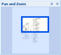 [パン/ズーム] ウィンドウの表示方形を移動またはサイズ変更すると、それに応じてメイン マップの表示が調整されて拡大縮小されます。同様に、メイン マップ表示を移動または拡大すると、[パン/ズーム] ウィンドウにこの変更が反映されます。